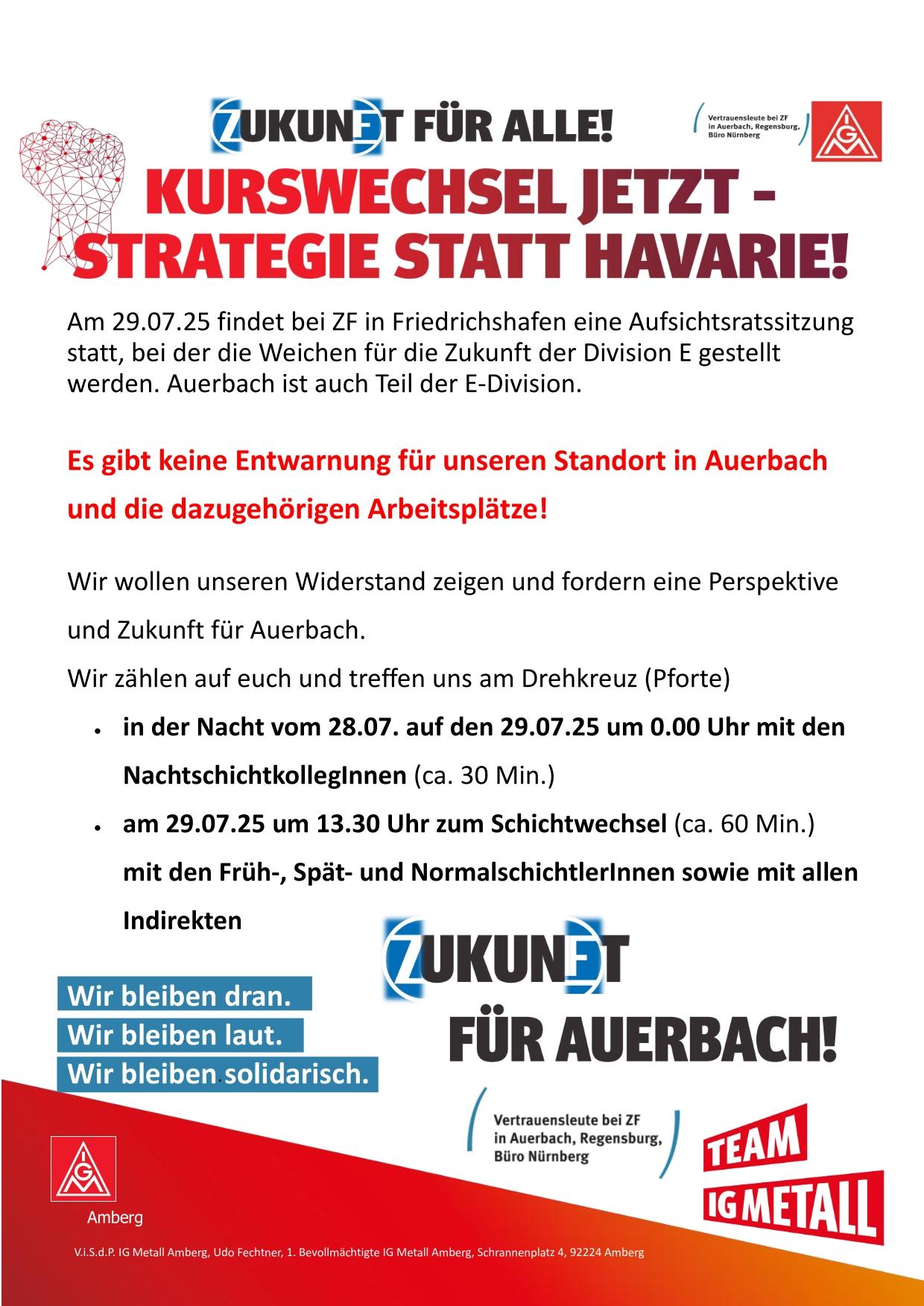 Am 29.07.25 findet bei ZF in Friedrichshafen eine Aufsichtsratssitzung statt, bei der die Weichen für die Zukunft der Division E gestellt werden. Auerbach ist auch Teil der E-Division.
