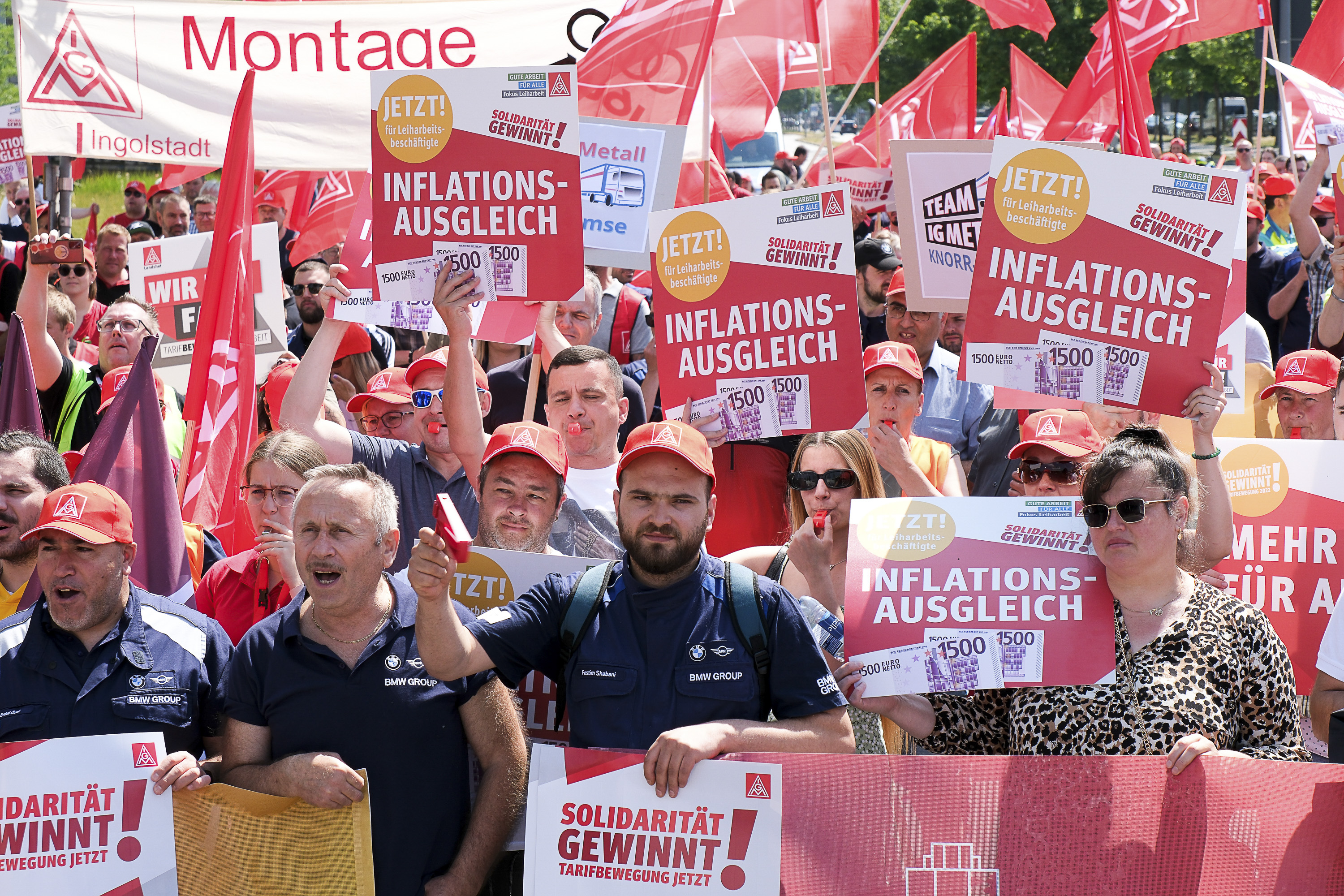 Tausende Leihbeschäftigte hatten während der Tarifrunde Leiharbeit 2023 für die IAP bundesweit mit Aktionen Druck gemacht, solidarisch unterstützt von Stammbeschäftigten. Allein zur Demo vor Beginn der Verhandlung am 16. Juni 2023 in München kamen 1000 Leihbeschäftigte.